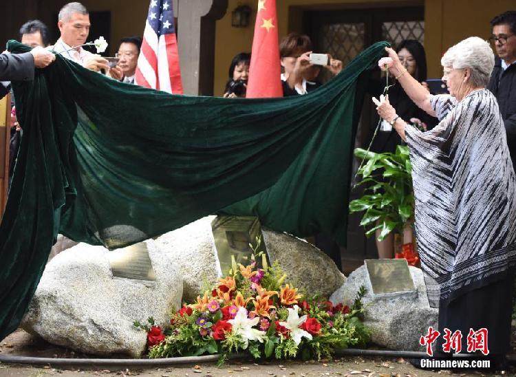 中新网消息,当地时间11月12日上午,威尔逊医生纪念碑落成典礼在美国加州阿凯迪亚市举行。中国驻洛杉矶总领馆官员、威尔逊家人、美国友好人士、侨学界代表等数百人出席揭幕仪式,共同纪念威尔逊医生在侵华日军南京大屠杀期间的人道义举。图为威尔逊医生的家人为纪念碑揭幕。