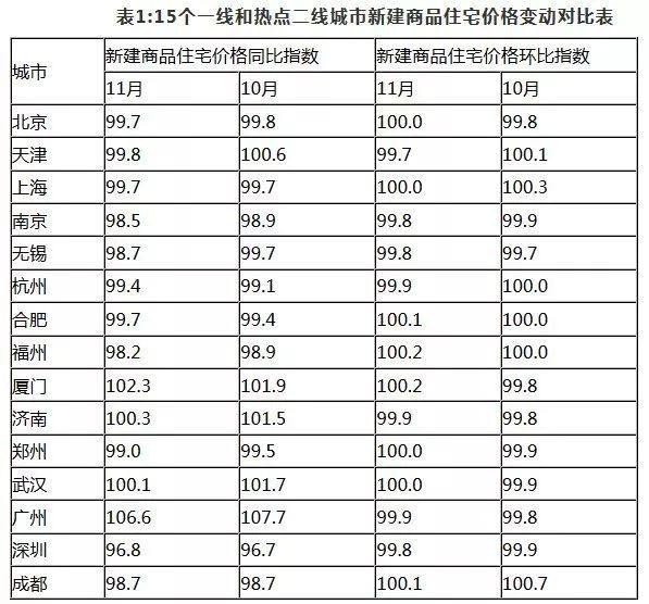 18日,国家统计局发布11月70城住宅销售价格变动情况。从同比变动看,11个热点城市新建商品住宅价格下降,降幅在0.2至3.2个百分点之间,说明这些城市新房价格已低于去年同期水平。