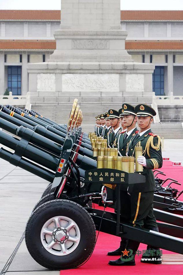 按照规定,在迎接外国领导人来访时,欢迎仪式通常在人民大会堂东门外的广场上举行。8门礼炮一字排开,放置在广场中心线南北一侧。炮口的位置朝向国家博物馆。在欢迎仪式上,按国际惯例,迎接国家元首鸣礼炮21响,迎接政府首脑鸣礼炮19响。