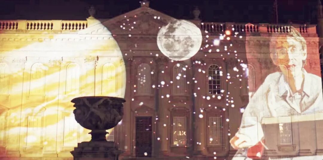 剑桥大学官网上也登载了他年轻时的照片,这张照片还被灯光放大了打在剑桥大学的建筑上。