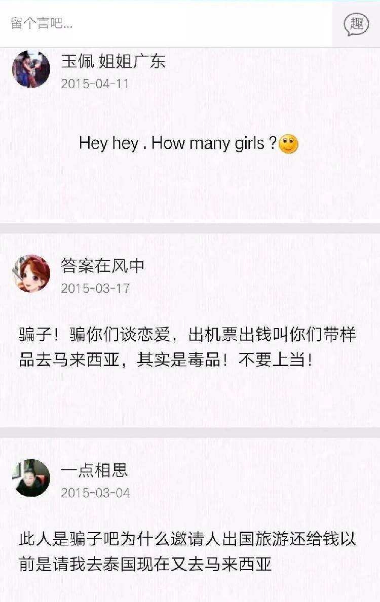 在他的QQ空间的留言板上,有多位网友留言称,“不要被这个骗子骗到,他经常会变着花样骗中国女孩,让她们带衣服样品”。“Love”不懂中文,没有删除这些留言。