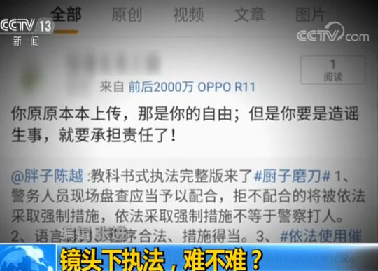 【微博】:这话说的没毛病,完全适应镜头下执法。你原原本本上传,那是你的自由;但你要是造谣生事,就要承担责任了!