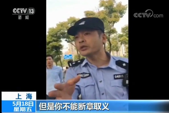 上海警察:“我现在跟你说,你拍可以,但你不能断章取义,掐头去尾,你要传(网上)你就整段传,出了事情你自己负责,否则要为造成的不良社会后果负责。”