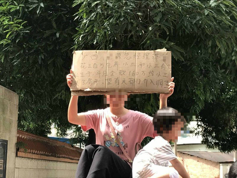 原标题:花300万元包养小三?广西一公司原总经理被一年轻女子举牌举报