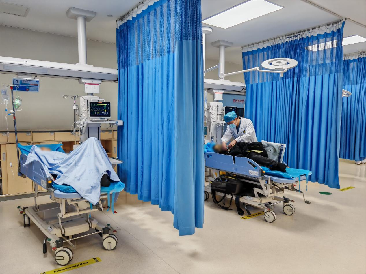 “我们通常是根据病人情况,开通绿色通道,无缝衔接。”沈一鸣描述着抢救室的节奏。对于主动脉夹层患者,需立刻通知胸心外科,尽快明确类型,控制血压心率,准备手术室,有条件者转院前建立联系,早期指导,动态随访;对于创伤患者,要稳定生命体征、明确损伤、联动多科室,有条件者院前尽快告知院内,提前启动创伤团队、急诊科等待患者,快速止血输血手术治疗;对于心梗或脑卒中患者,更是要在“时间窗”内完成评估、检查、会诊,甚至直接送入导管室或手术室。每一分钟,都在抢夺生机。