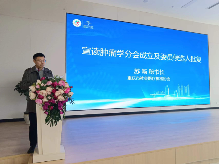 苏畅对重庆市社会医疗机构协会肿瘤学分会的成立表示祝贺,希望通过肿瘤学分会这个平台促进肿瘤学科建设,为基层肿瘤患者提供规范化和标准化的医疗服务,造福更多肿瘤患者,为“健康中国”贡献力量。