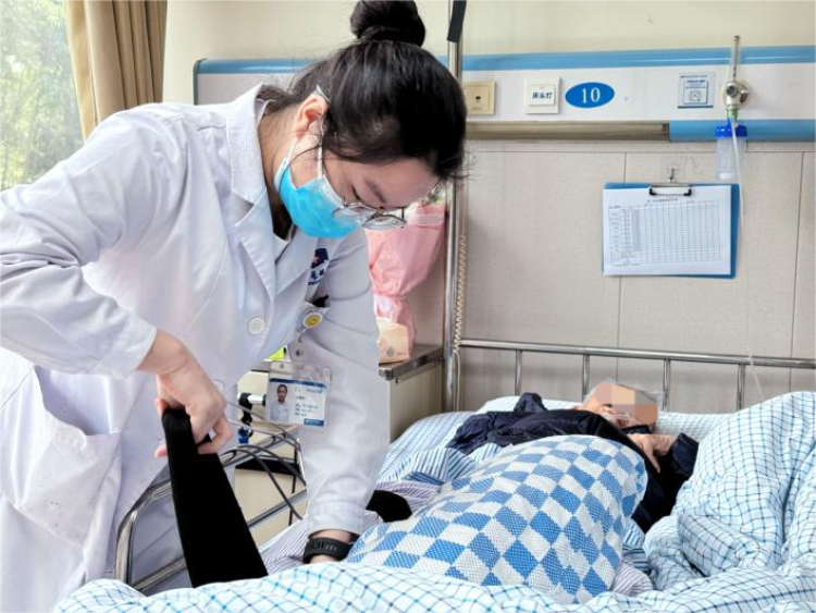 康复师对梅婆婆进行术后气压康复预防血栓/图源 重庆长城骨科医院
