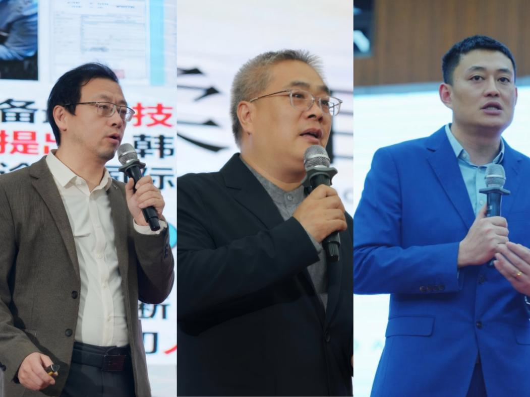 中国科学院微电子研究所王斌博士、国家级非遗代表性项目中医正骨疗法传承人罗震、保定中药营销中心AI品质生活馆执行副总裁吴杰。图源 金木集团