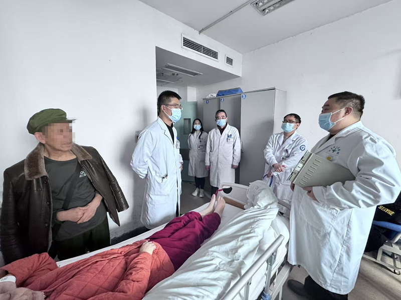 授课结束后,吴绮楠教授深入病房开展教学查房。针对科室收治的糖尿病合并肾病综合征病例,他详细询问病史、细致查体,结合患者检查报告与治疗现状,与管床医师共同梳理诊断思路,优化治疗方案。同时,通过“病例分析+提问互动”的方式,引导基层医护人员建立系统性临床思维,重点讲解了病情监测要点与多学科协作管理技巧。