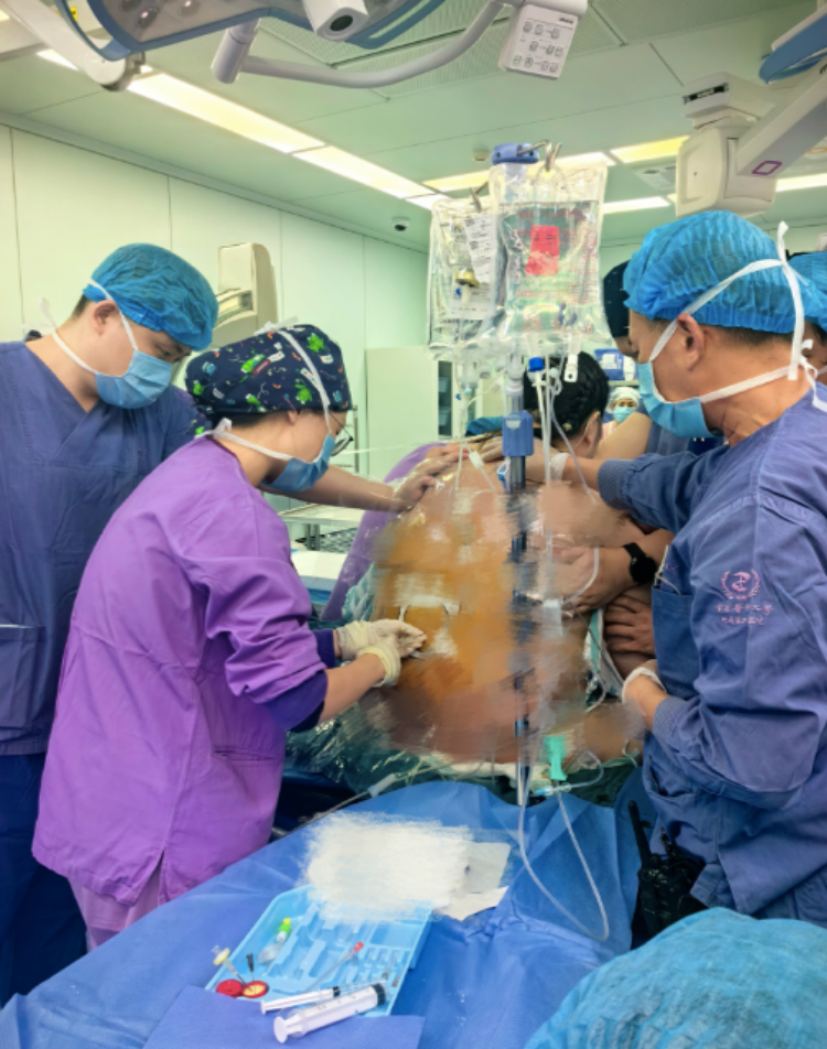 这场极高危产妇剖宫产手术的难度与风险不言而喻,麻醉就是术中须面临的第一个挑战。据悉,一般剖宫产手术采用侧卧位椎管内麻醉,但因肥胖、心脏、全身水肿等问题,刘女士术前几天就已无法平卧,否则会呼吸困难,所以麻醉团队舍弃了该麻醉方式。并且,术前治疗过程中,刘女士的微血栓指标持续升高,如使用全麻,其气管插管、拔管的操作很可能带来血栓风险,所以也无法实施。