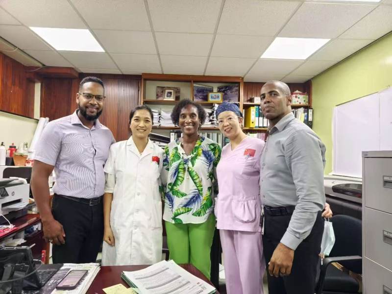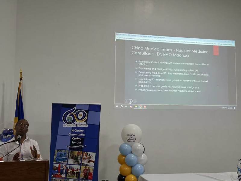 在中国援建的巴巴多斯肿瘤中心,饶茂华以核医学科背景,积极参与肿瘤中心核医学科规划论证,就核医学科人员与放射性通道设计、SPECT/CT、PET/CT及热室、回旋加速器设备布局、放射性病房及衰变池设置等提出专业建议,相关意见形成书面材料并获得高度重视,充分体现了中国医疗队在重大项目中的专业价值与责任担当。