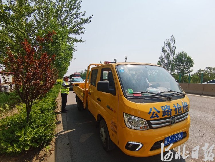 6月13日10时,沧县公路管理站张官屯养护中心主任田锋开着巡查车,打着双闪,以30千米的时速在S220公路上巡查。
