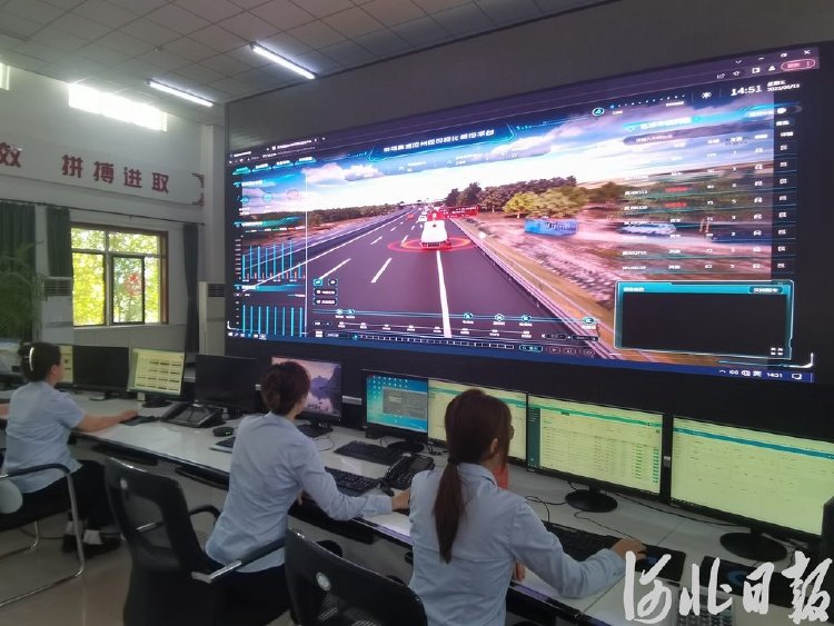 今年3月,荣乌高速沧州段可视化管控平台投入运营。在平台智能大屏上,循环播放着103个固定点位摄像头拍摄的实时影像。