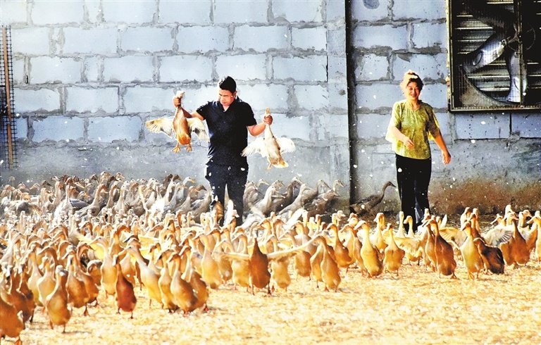 独行快,众行远。为了让“海卓扬”做大做强,张建勇创新推出“公司+合作社+农户”模式,成立了卓扬蛋鸭养殖合作社。通过土地流转、入股等方式建起23个标准化养殖棚,2/3租给村民承包,张建勇提供技术、饲料并负责回收销售。“这个模式已带动50余名群众就业,村集体经济持续壮大,有的村民年收入能达到十五六万元。”张建勇笑着说。