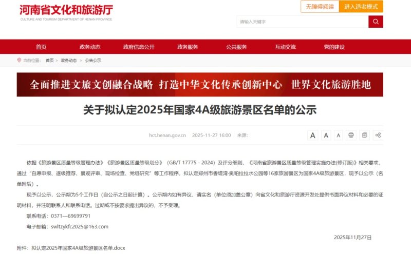 原标题:拟上新!国家4A级旅游景区,河南+16!