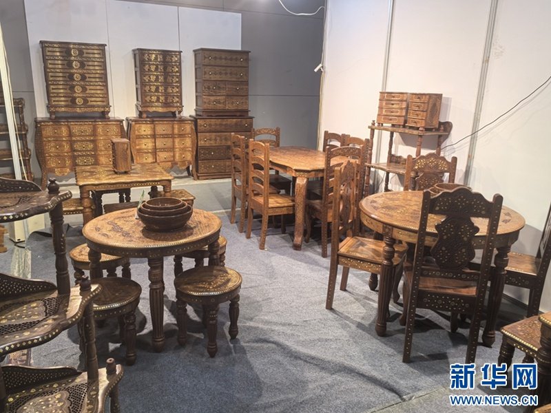 图为第27届中国农产品加工业投资贸易洽谈会上售卖的巴基斯坦木质家具。新华社记者马意翀 摄