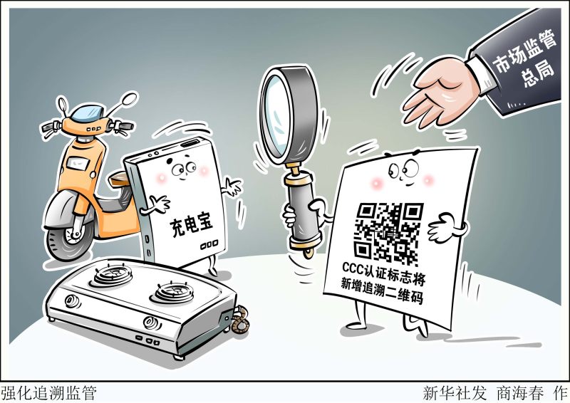 记者12月22日从市场监管总局获悉,我国将对充电宝、燃气燃烧器具、电动自行车等高风险产品的CCC认证标志新增追溯二维码。自2026年3月起对部分产品开始试点,经一年过渡期后(2027年3月起)将扩大试点产品范围。