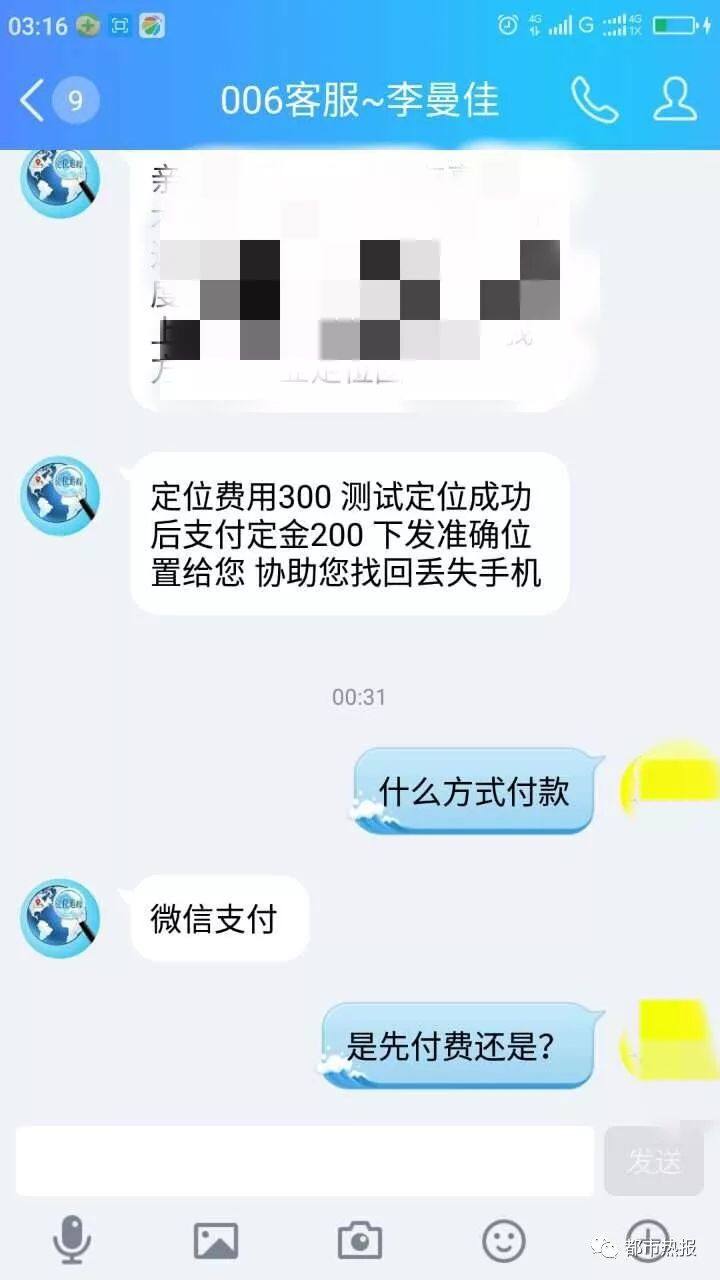 “听说手机可以通过定位找到所在位置。”刘璐突发奇想,便在网搜索手机丢失如何找回的信息,这一搜还真有方法,并有专门的公司在做这项服务。刘女士在点开了一个标题中与她丢失手机型号一致的链接,是一篇类似新闻的文章,里面有定位服务的QQ号,刘璐通过该QQ又加了另外一个客服QQ号,QQ资料介绍中显示北京**卫星通信科技公司,对方称缴纳200元定金后,再交300元定位费发送定位位置找回手机。