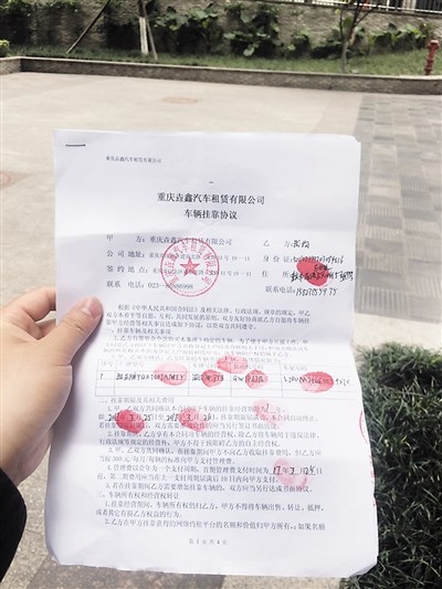 大均向记者出示了一份他与重庆垚鑫汽车租赁有限公司签订的一份《车辆挂靠协议》。
