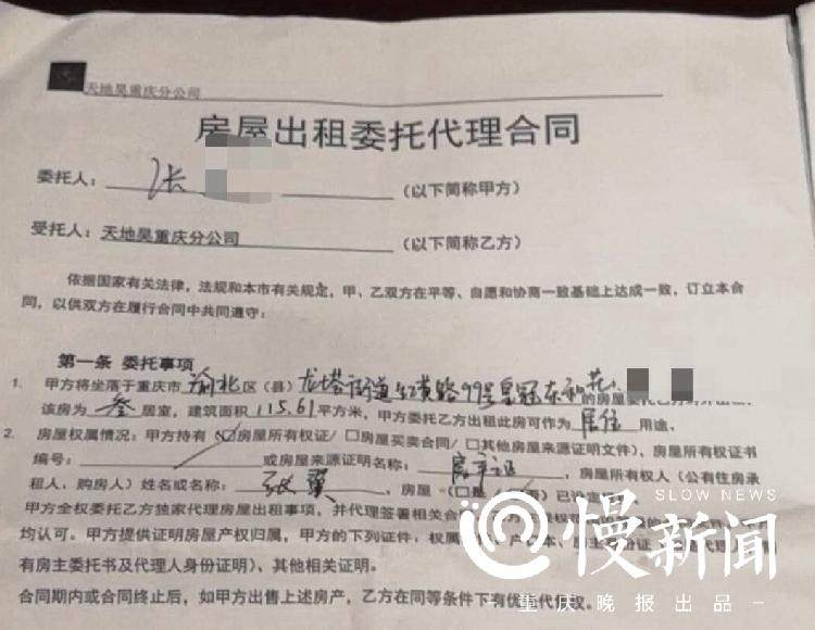 张女士在渝北区黄泥塝皇冠东和小区有套闲置房产。她说,2017年,她将房屋信息挂在网上求租,期间不少中介公司前来询问,表示可以“托管”。张女士遂来到几家中介公司考察,最终相中一家名为“天地昊”的公司,“位置在观音桥中信大厦,多大一层楼,感觉比较有实力,所以放心一点。”