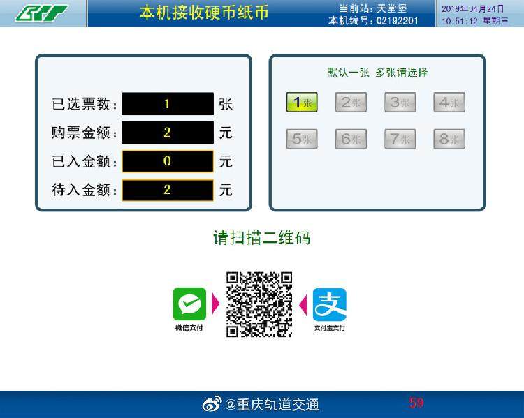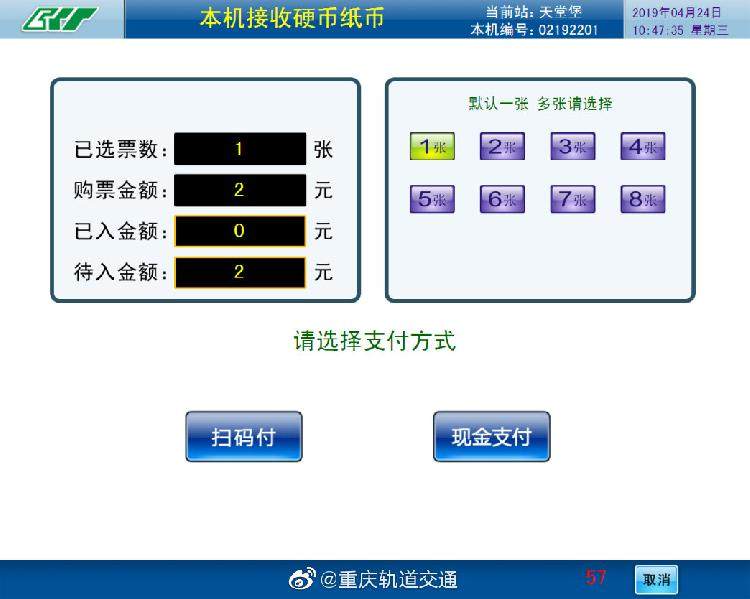 至此,重庆轨道交通实现全线网移动支付购票。乘客可通过在自动售票机的扫二维码支付界面、或在人工售票机展示付款码的方式,实现移动支付购票。