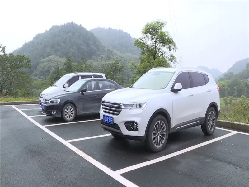 ▲山脚修建了停车场,供驾车前来的市民免费停放。