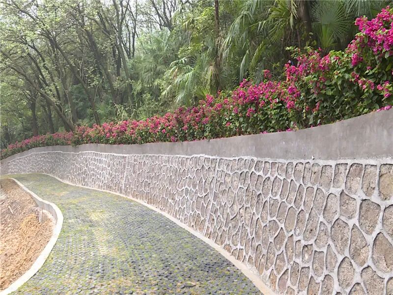 ▲3号步道上,植草砖生态环保,三角梅尽情绽放。