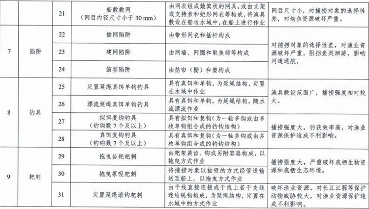 《农业农村部关于发布长江流域重点水域禁用渔具名录的通告》将从12月1日起正式施行,36种渔具被纳入禁用名录。