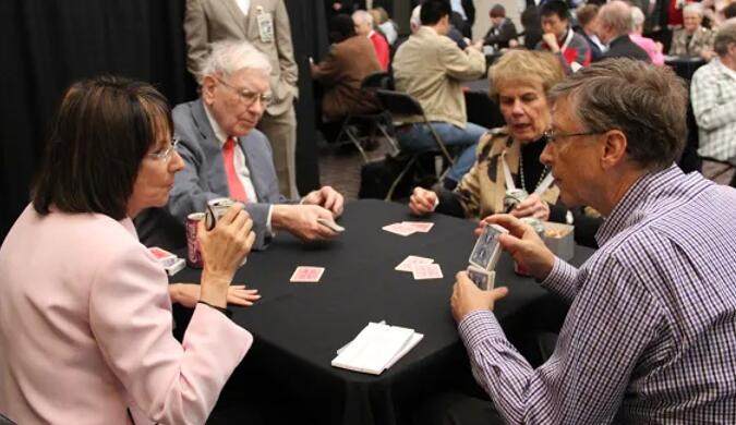 目前,巴菲特的牌友几乎遍布各行各业,有法官、汽车经销商、广告商、律师等等。每到线下打牌时,巴菲特会拎着一盒六听装的可乐出现。他在打牌时全神贯注,俨然一位专业牌手。