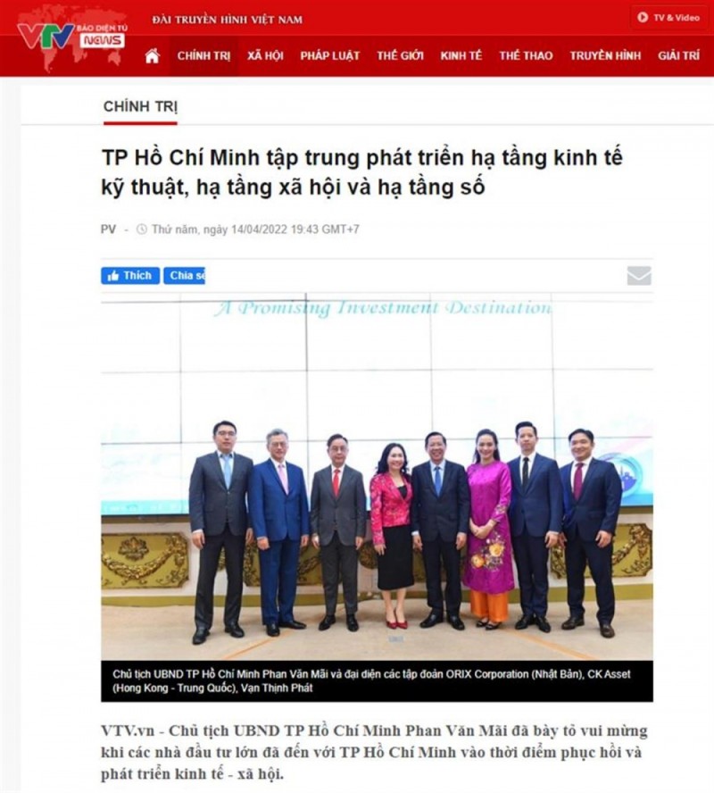 极目新闻消息,综合越南电视台(VTV)等媒体报道,近日,越南胡志明市市长潘文迈和长江实业集团(以下简称“长实”集团)及日本欧力士集团的相关代表举行会面,就在胡志明市的投资事宜进行讨论。