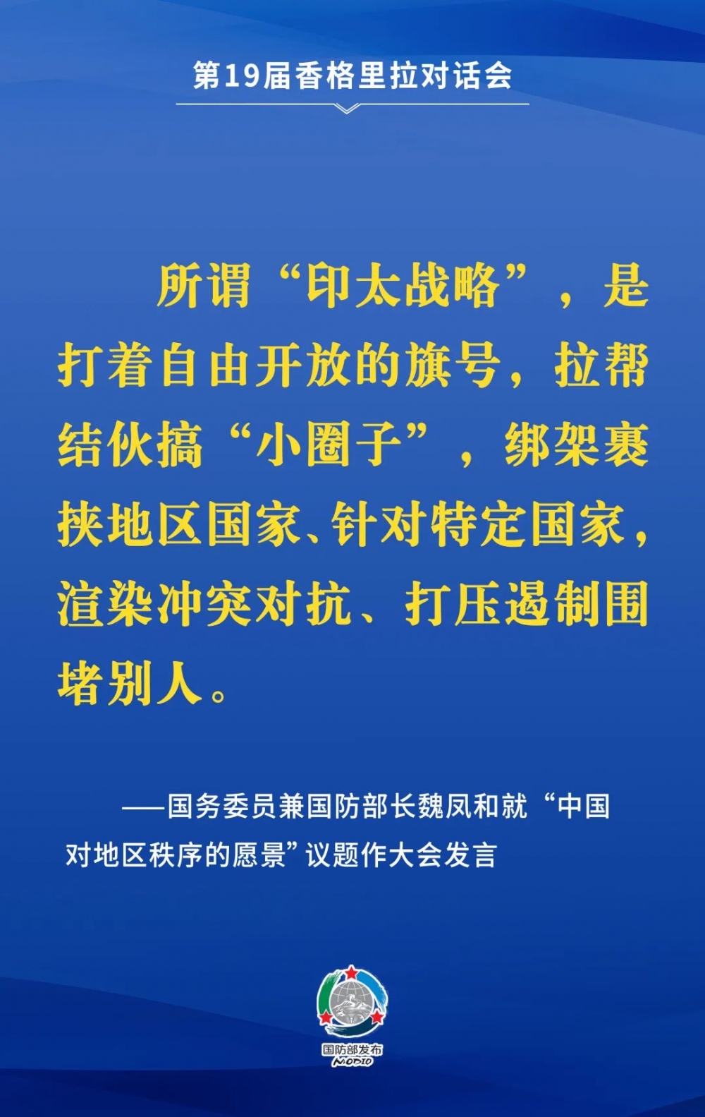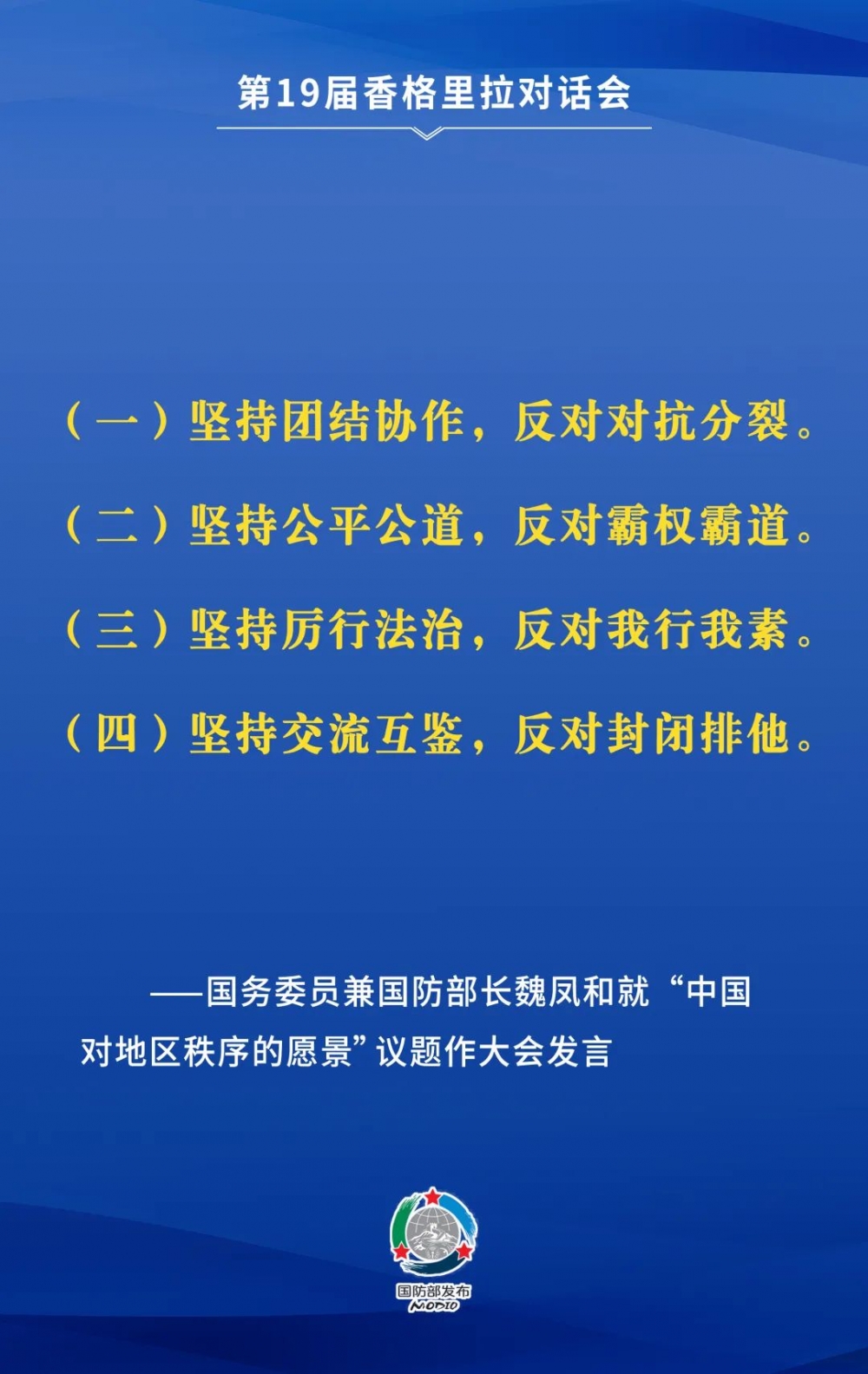 要点来了!魏凤和在第19届香格里拉对话会上作大会发言