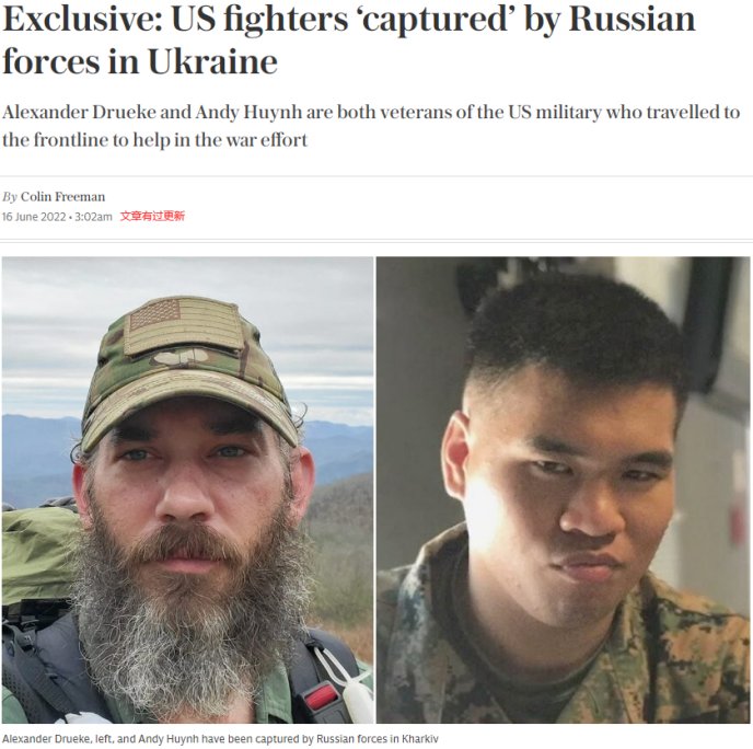 环球时报-枢密院十号消息,15日,英国《每日电讯报》发布独家报道,称两名前美国军人上周在乌克兰东北部城市哈尔科夫外一场激战中被俘。透露这则消息的,据说是两名被俘士兵的战友。而这两人也被认为是第一批成为俄罗斯战俘的美国人。此事一经报道,迅速登上各大媒体头条,也让美西方大捏一把汗……