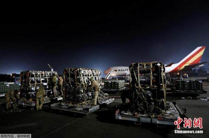 资料图:当地时间2月10日,美国飞机将军援物资运抵乌克兰基辅。