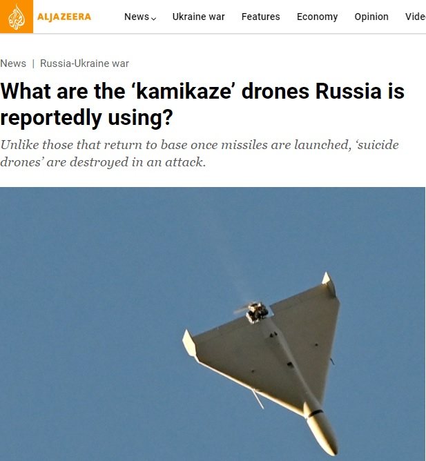 外媒介绍俄据报在乌使用的伊朗制自杀式无人机情况。图片来源:卡塔尔半岛电视台报道截图