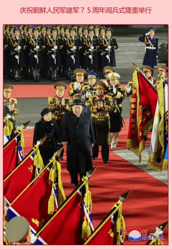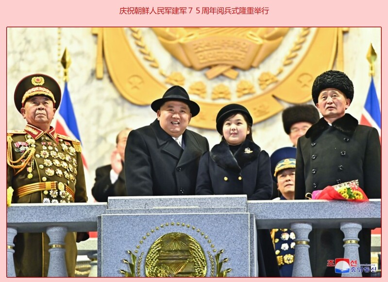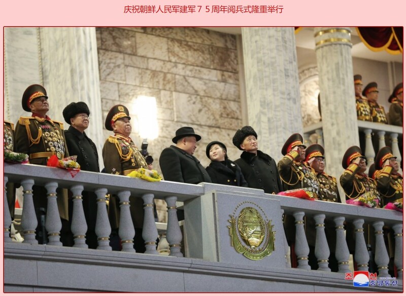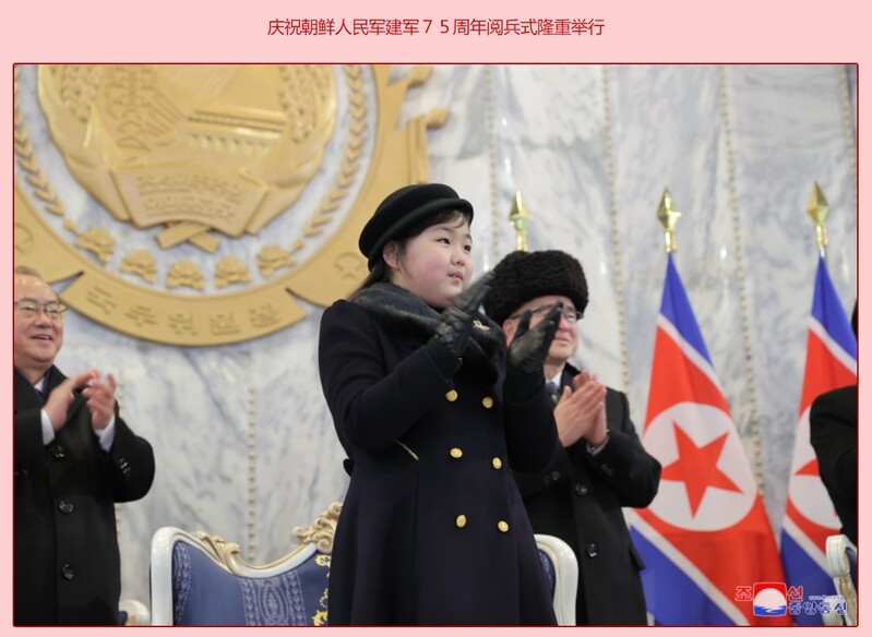 今年元旦,“金主爱”被曝光牵着父亲的手参观一家弹道导弹工厂。2月8日,在朝鲜人民军建军75周年阅兵仪式上,“金主爱”更是牵着父亲的手走过红毯,走上主席台,还天真烂漫地抚摸父亲的脸庞。