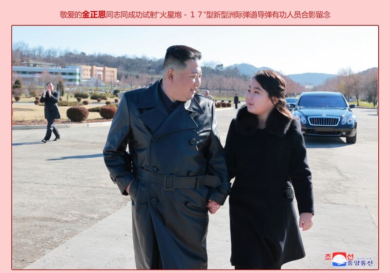 外界对邮票所选用的照片并不陌生。去年11月18日,金正恩携妻女前往现场指导“火星炮-17”的试射活动。在朝中社此后发布的多张照片中,“金主爱”首次亮相。