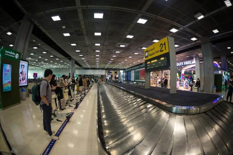 ▲当地时间2023年2月13日,泰国曼谷,在素万那普国际机场,乘客们正在等待领取行李。视觉中国