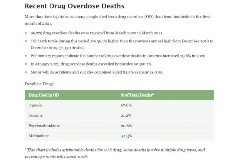 美国国家药物滥用统计中心(NCDAS)公布调查数据显示,在2020年3月至2021年3月期间,美国共报告了96,779例药物过量死亡病例。在NCDAS按药物类别细分的数据中,阿片类药物占过量死亡的比例最高,达到67.8%,在所有阿片类药物中,属芬太尼最为致命。直新闻查阅资料发现,早在几年前,芬太尼“丧钟”就已敲响,但并未得到美国国内足够重视。