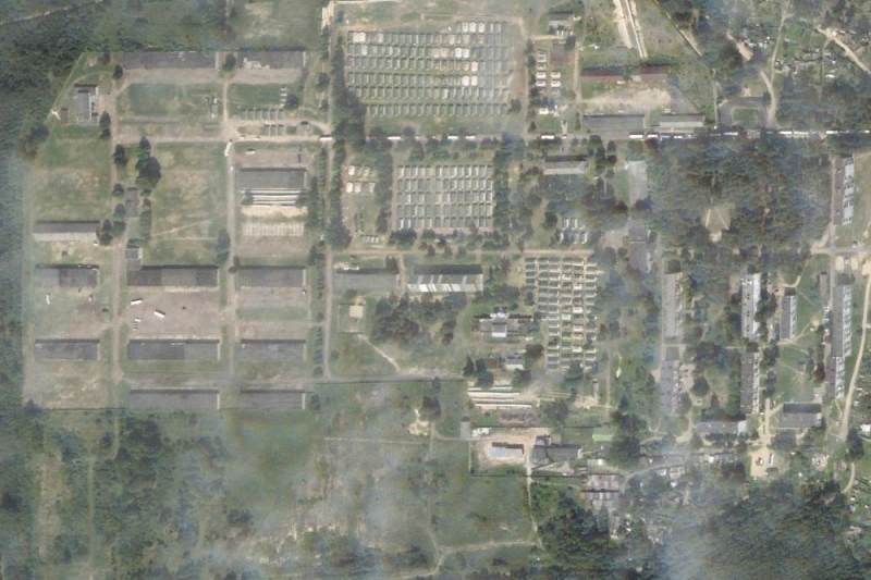 当地时间2023年7月17日,白俄罗斯奥西波维奇,卫星图显示,数十辆汽车组成的车队抵达奥西波维奇镇外的一个前军事基地。