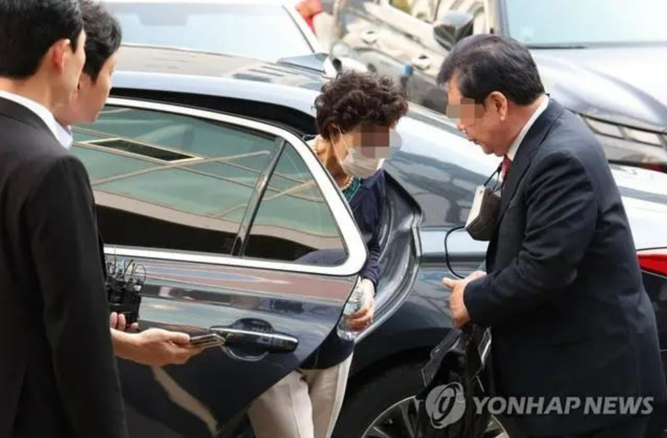 ▲7月21日,在韩国京畿道议政府地方法院,尹锡悦的岳母崔恩顺(右二)下车准备进入法院