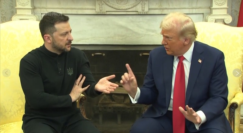 当地时间2月28日,美国总统特朗普与到访白宫的乌克兰总统泽连斯基在媒体前爆发激烈争吵。视频截图