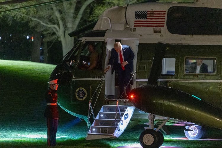 3月30日,美国总统特朗普乘直升机返回首都华盛顿白宫。新华社记者 胡友松 摄