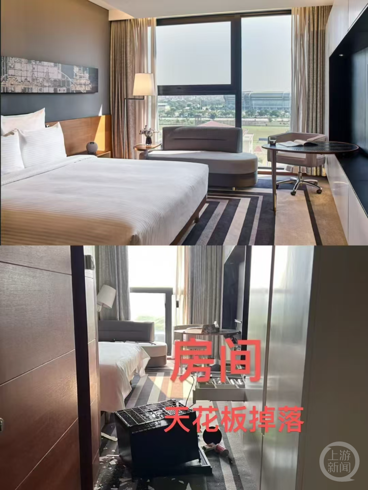 臧先生在曼德勒住的酒店房间天花板都掉下来了。受访者供图
