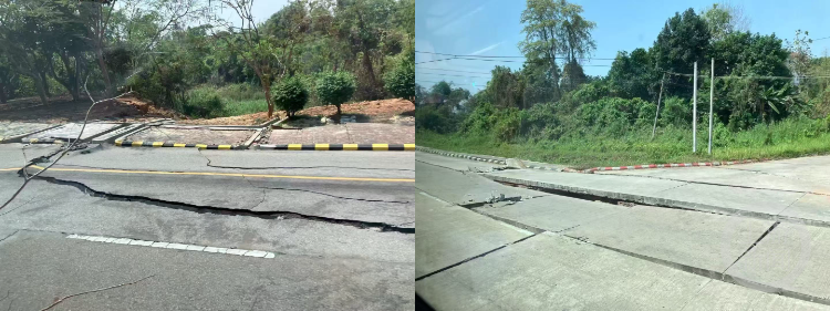 从曼德勒到仰光的高速公路,此前臧先生曾跑过,平时驾车7-8小时就能跑完,可这次地震导致公路受损严重,整个行程花了大约13个小时。从臧先生分享的短视频来看,公路上多处出现竖向横向的的裂隙、凸起……