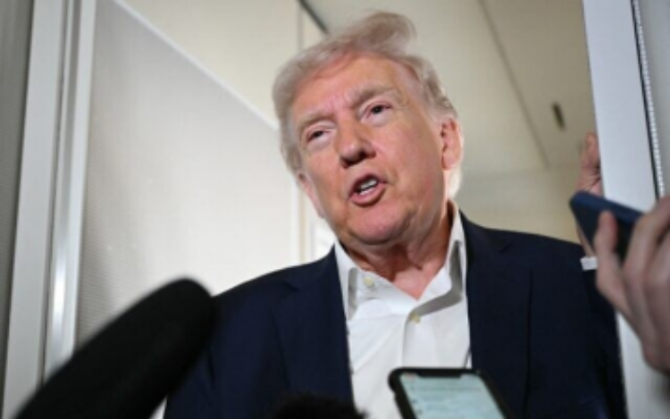 当地时间4月11日,特朗普在美国总统专机“空军一号”上接受记者提问。图源:外媒