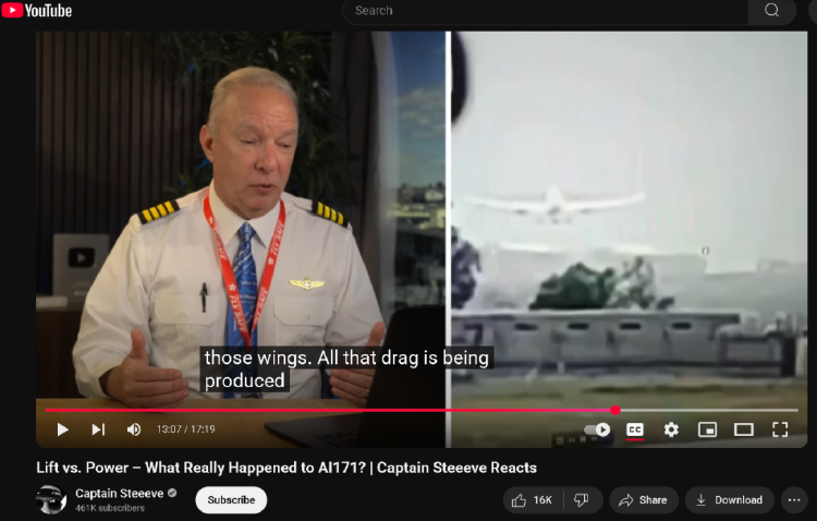(图为一位开过波音787客机的机长在给出他的分析,他认为是客机双发动机失效的可能性相对更大)