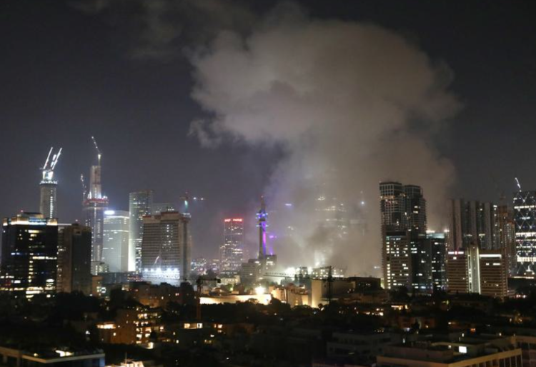 6月13日,在以色列特拉维夫,一栋大楼被导弹击中后升起浓烟。新华社