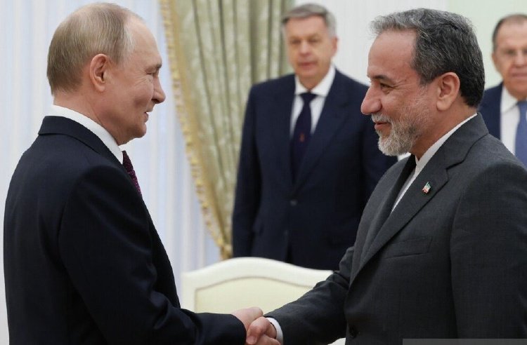 俄罗斯总统普京(左)和伊朗外长阿拉格齐(右)