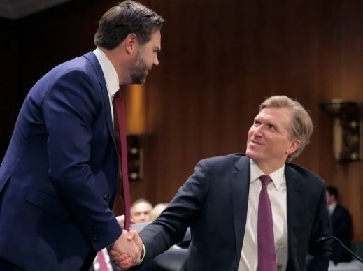 今年3月,科尔比在提名听证会上与万斯握手 美媒