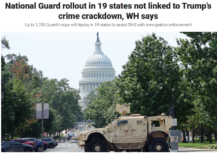 第二,特朗普此举还是为了迎合政治基本盘。去年大选中,特朗普一直在强调所谓“治安问题”和“非法移民问题”,就是要树立他在共和党基本盘中的强硬形象。向华盛顿特区“调兵”就是在传递信号:即在民主党的执政之下,华盛顿特区在治理上是失败的,而在特朗普回归之后大有改观,强调“有能政府”的形象。